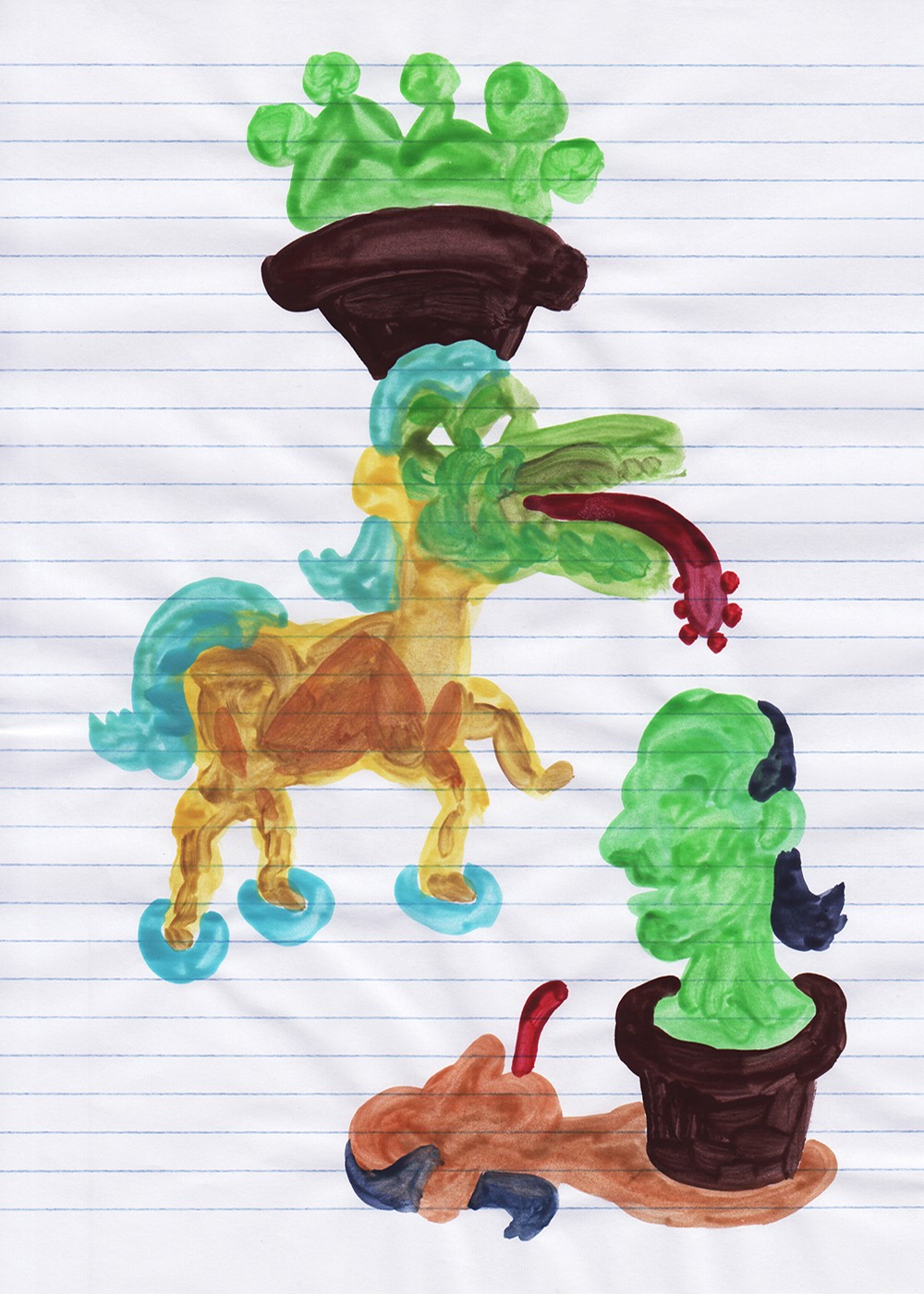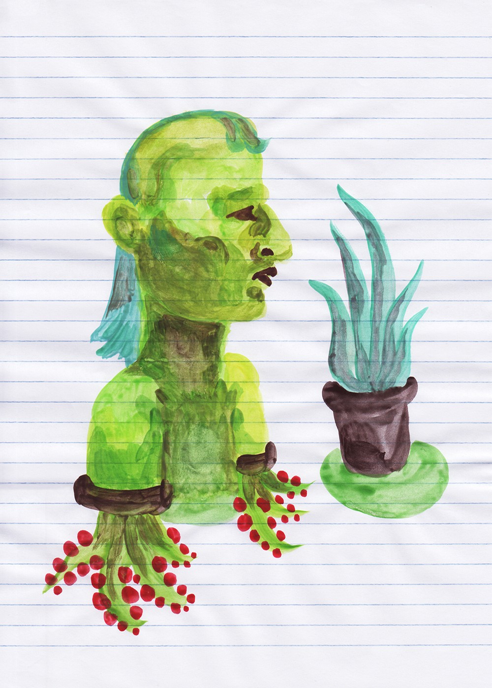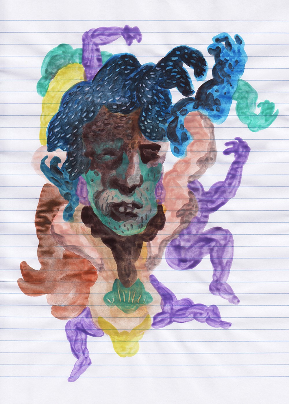 2015 - peinture à l'eau sur papier rayé A4